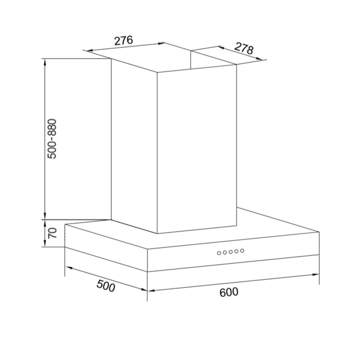 | Dimensiones mm | Ancho 600 x Prof. 500 x Alto 570/950 (extensión máxima del ducto) |