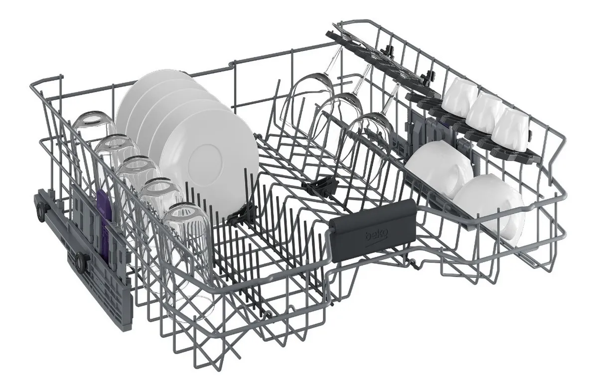 • Bandeja de cubiertos deslizante. La cesta para cubiertos es un ingenioso invento, pero siempre está en medio cuando vas a colocar una olla grande en la cesta inferior. La cesta deslizante para cubiertos acaba con ese problema, ya que se puede mover hacia la derecha o la izquierda para dejar espacio a los utensilios más voluminosos.