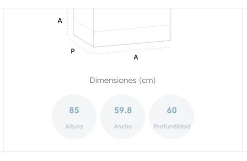 | Dimensiones | Alto x Ancho x Prof. desembalado (mm) 850 x 600 x 600 |